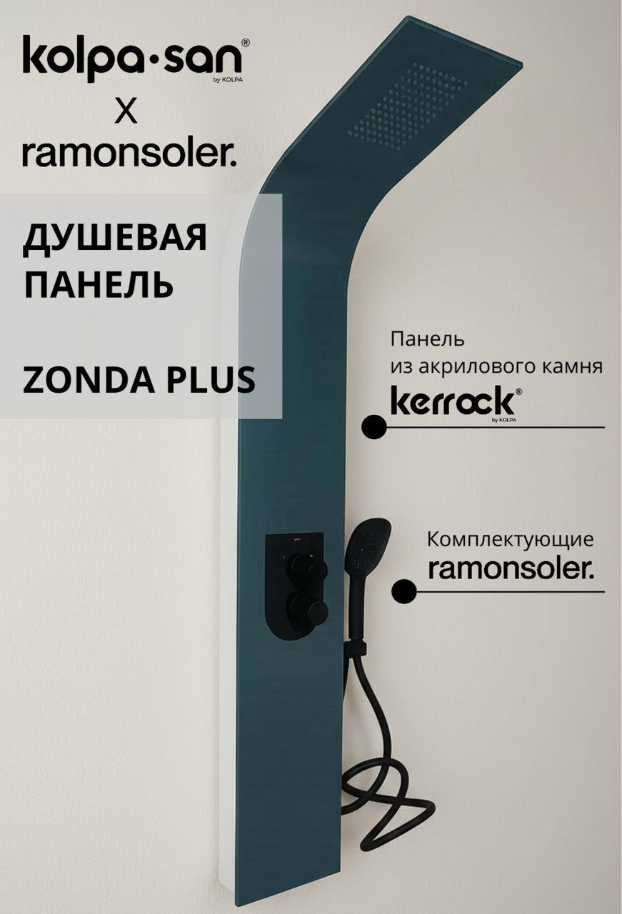 Kolpa-San и ramonsoler. объединили свои разработки и опыт в области сантехники и представили душевую панель ZONDA PLUS из акрилового камня Kerrock с интегрированными комплектующими от ramonsoler.