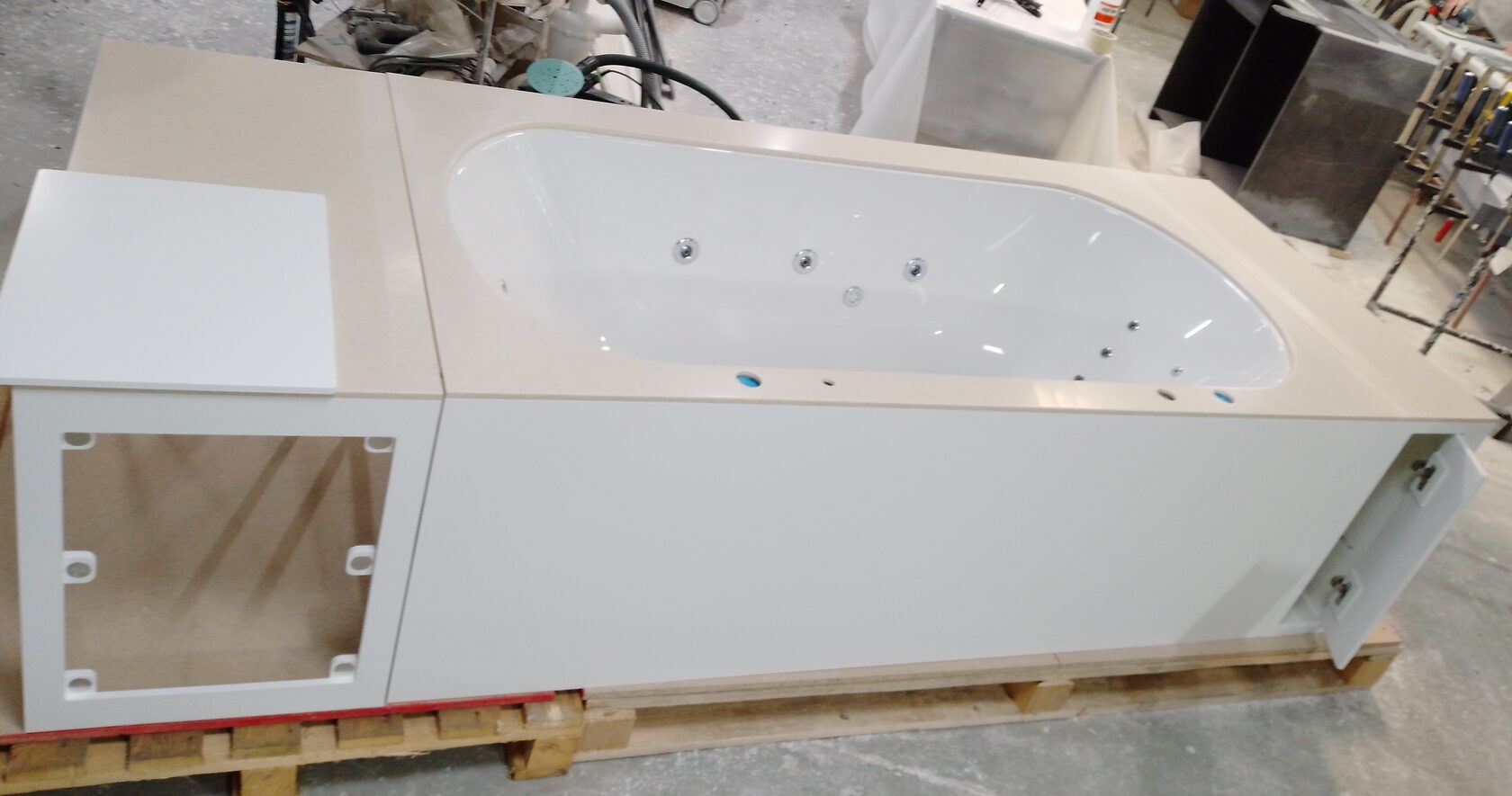 Мы локально производим изделия из акрилового камня Kerrock (Словения) и устанавливаем на ванны Kolpa-San из акрила или акрилового камня Kerrock.
