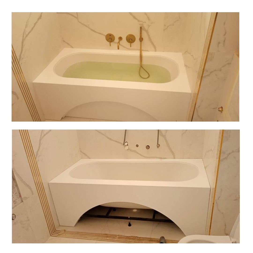 Облицовка ванны акриловым камнем позволит вам создать уникальную и изысканную атмосферу.